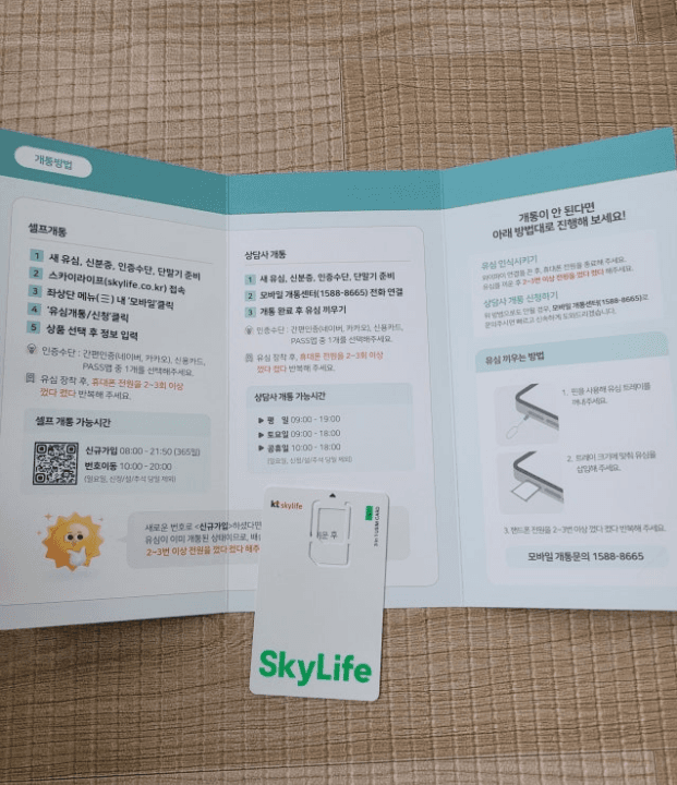 유심 구매해서 무료배송으로 우체국택배로 안전하게 받아서 KT스카이라이프 셀프 개통해서 잘 사용하고 있습니다. 처음으로 셀프 개통하는거여서 좀 두려웠지만, 셀프 개통가이드를 통해서 아주 쉽게 개통 할 수 있었습니다. 평생유심이고, 통화 품질도 만족하고, 요금제도 저렴하고, 잘 사용하고 있습니다.