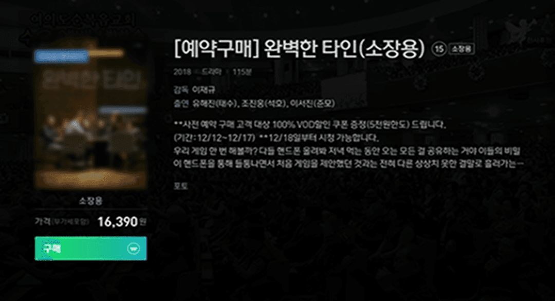 신작 영화 VOD 서비스 개시 전 예약 구매가 가능해요.